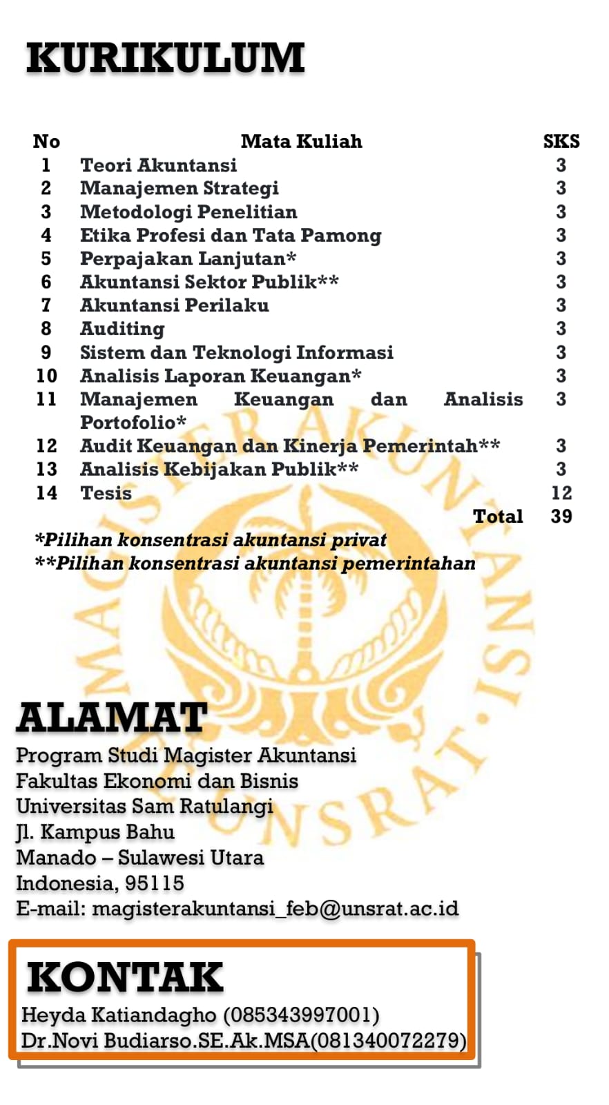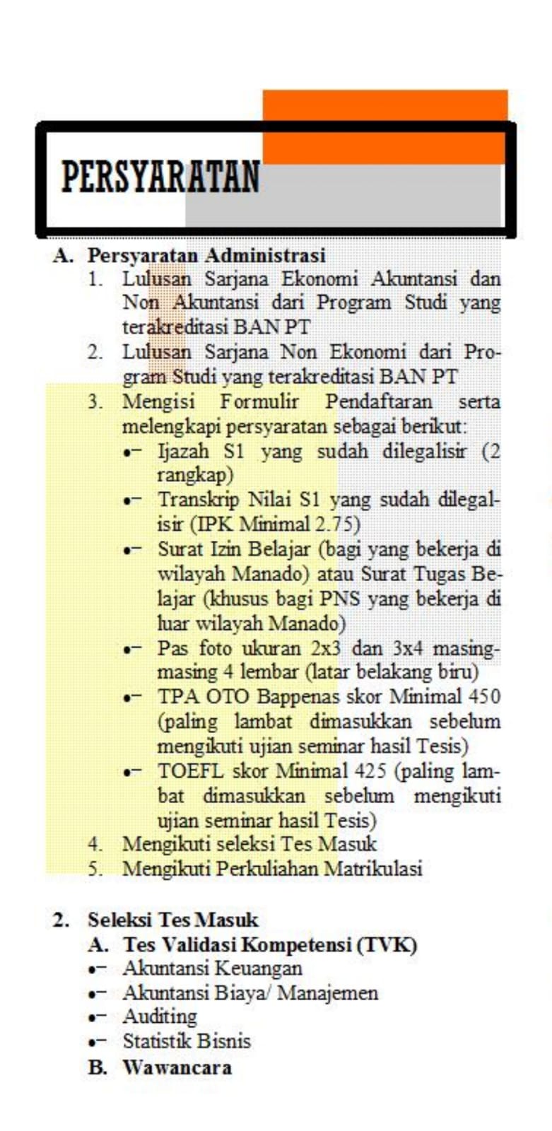 Penerimaan Mahasiswa Baru Program Studi Magister Akuntansi UNSRAT